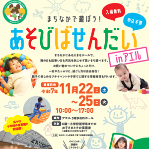 まちなかにある大きなホールで雨の日も肌寒い日も天気を気にせず思いきり遊べます。お買い物のついてでにちょっとだけ、一日中だっぷりと、過ごし方は自由自在!親子で楽しめるプチイベントや子育てに関する情報発信も行います。